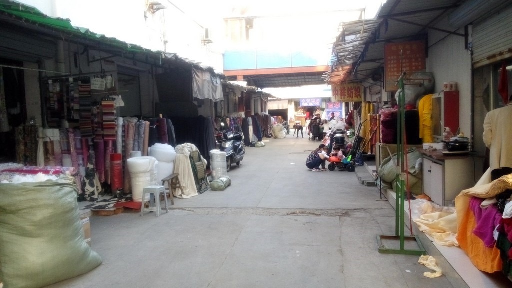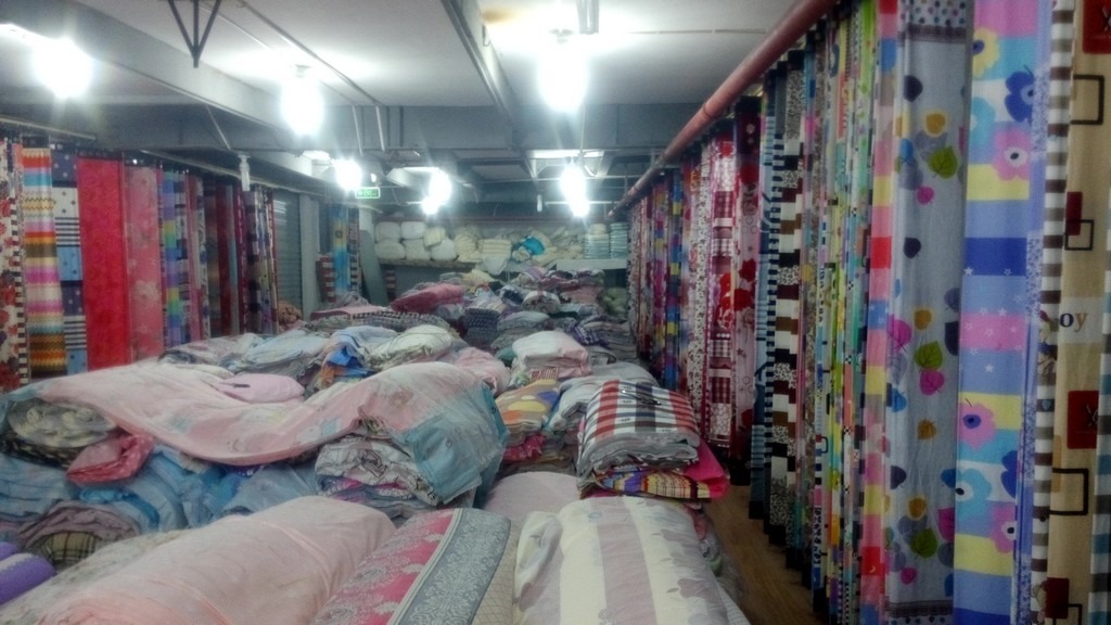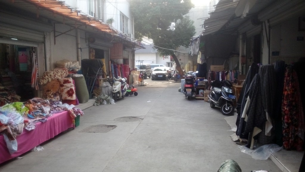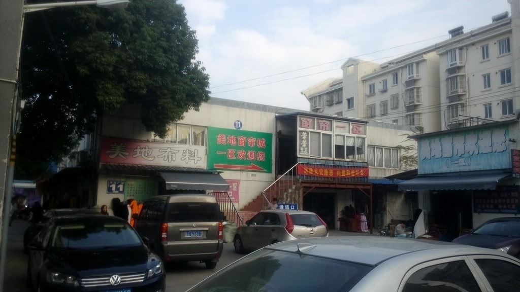 美地窗帘城,1楼,也就是街道边上,主要都是布料批发的: