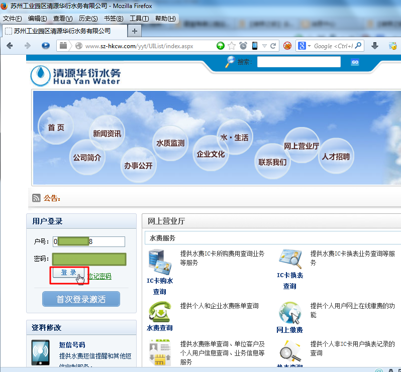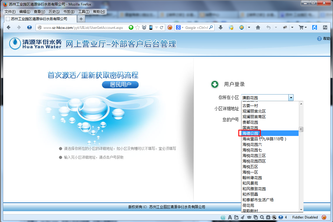 【整理】登录苏州园区清源华衍水务在线网站为海德公园小区某户去在线查看和缴纳水费