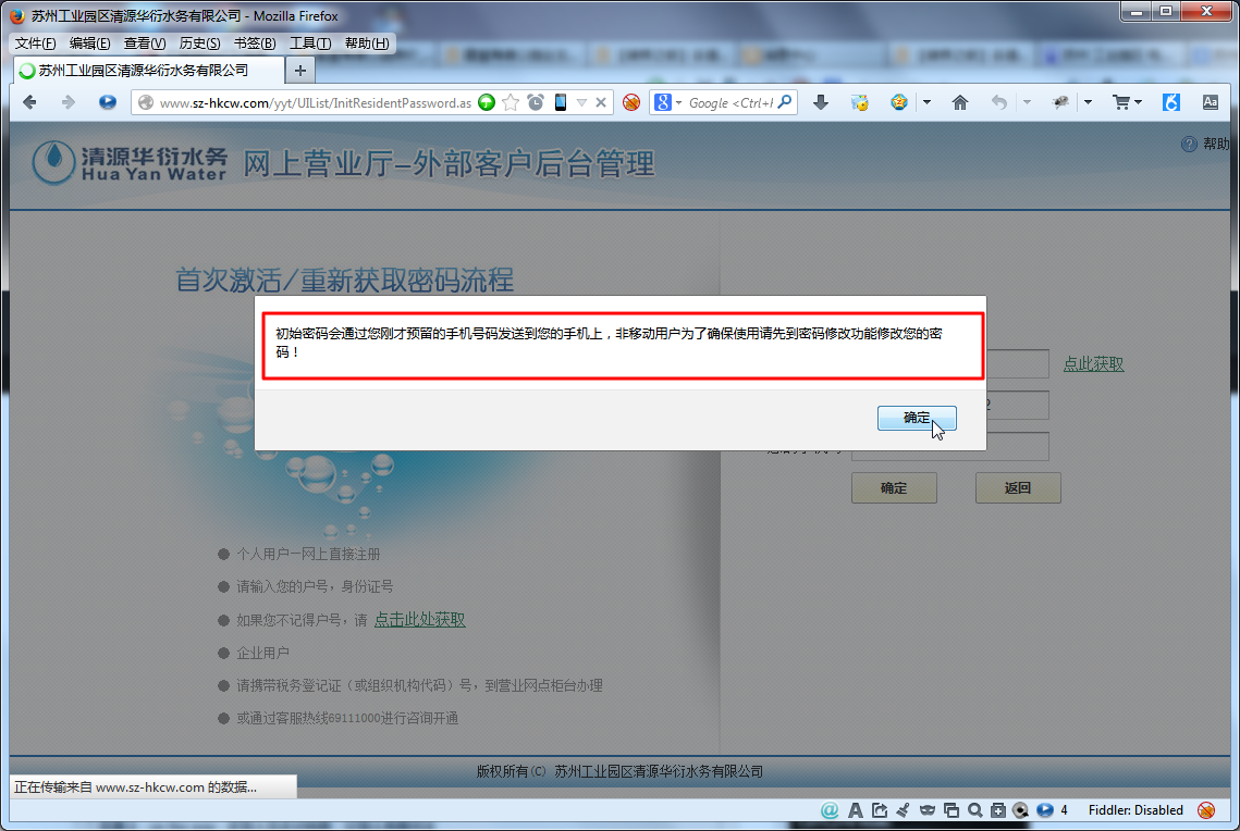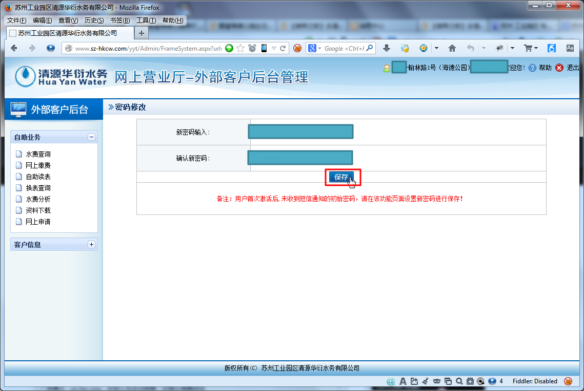此时你第一次登录水务的在线系统,清源华衍水务公司的系统会给你发短信提示你的。
