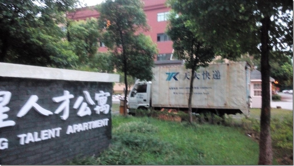 在MBA公寓西门南面有个白色的包厢式货车,是天天快递的收发点: