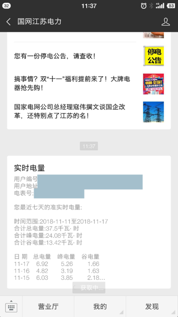 作为江苏省苏州市工业园区的普通居民,之前记得微信关注过一个公众号,可以查询到自己家的用电量的实时信息的,包括本周甚至当天的用电量。