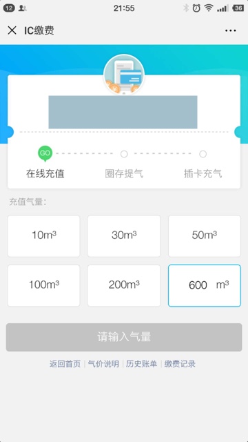 注:之前邻里中心菜场充值,记得好像还有限额,好像是300升
