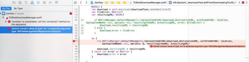 /Users/crifan/dev/dev_root/daryun/JianDao/iOS-Client/JianDao/TCBlobDownloadManager.swift:187:145: Cannot convert value of type ‘Int’ to expected argument type ‘NSFileManagerItemReplacementOptions’