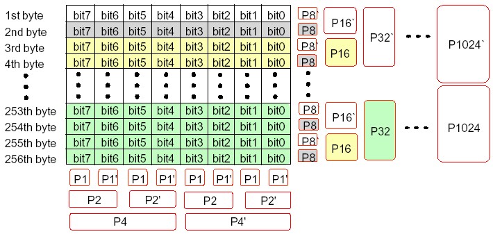 P2=D7(+)D6(+)D3(+)D2  P2`=D5(+)D4(+)D1(+)D0