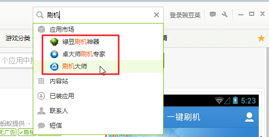 【背景】 折腾: 【记录】给安卓手机三星Galaxy S II GT-I9100G刷机的过程 期间,备份好了数据之后,就可以去找合适的刷机工具了。 【折腾过程】 1.在豌豆荚的PC端软件中,搜 刷机 找到有三个: 绿豆刷机神器 卓大师刷机专家 刷机大...