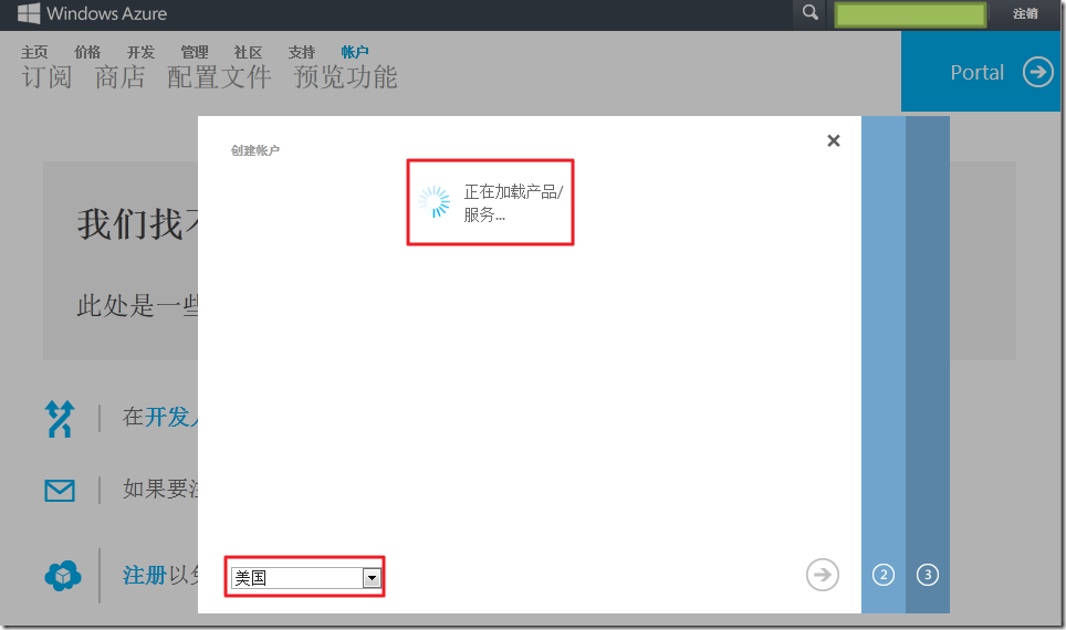 注册windows Azure时,遇到这个界面: 正在加载产品/服务… 然后就始终无法进行下去了。 最后是通过,点击那个默认的“美国”,换成“台湾“,即可正常出现注册界面: 但是后面需要添加手机号码,然后才...