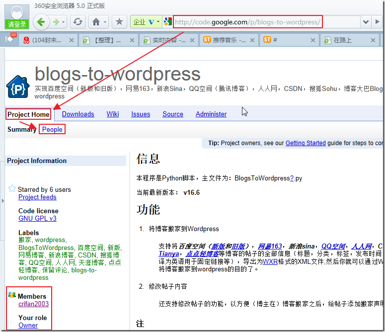 关于google code,不了解的去看: 【整理】google code简介和用法 其中: 对应的,谁创建对应的google code的项目的,叫做owner; 对于其他人,想要参加进来一起开发,以实现提交对应的改动,叫做member,开发...