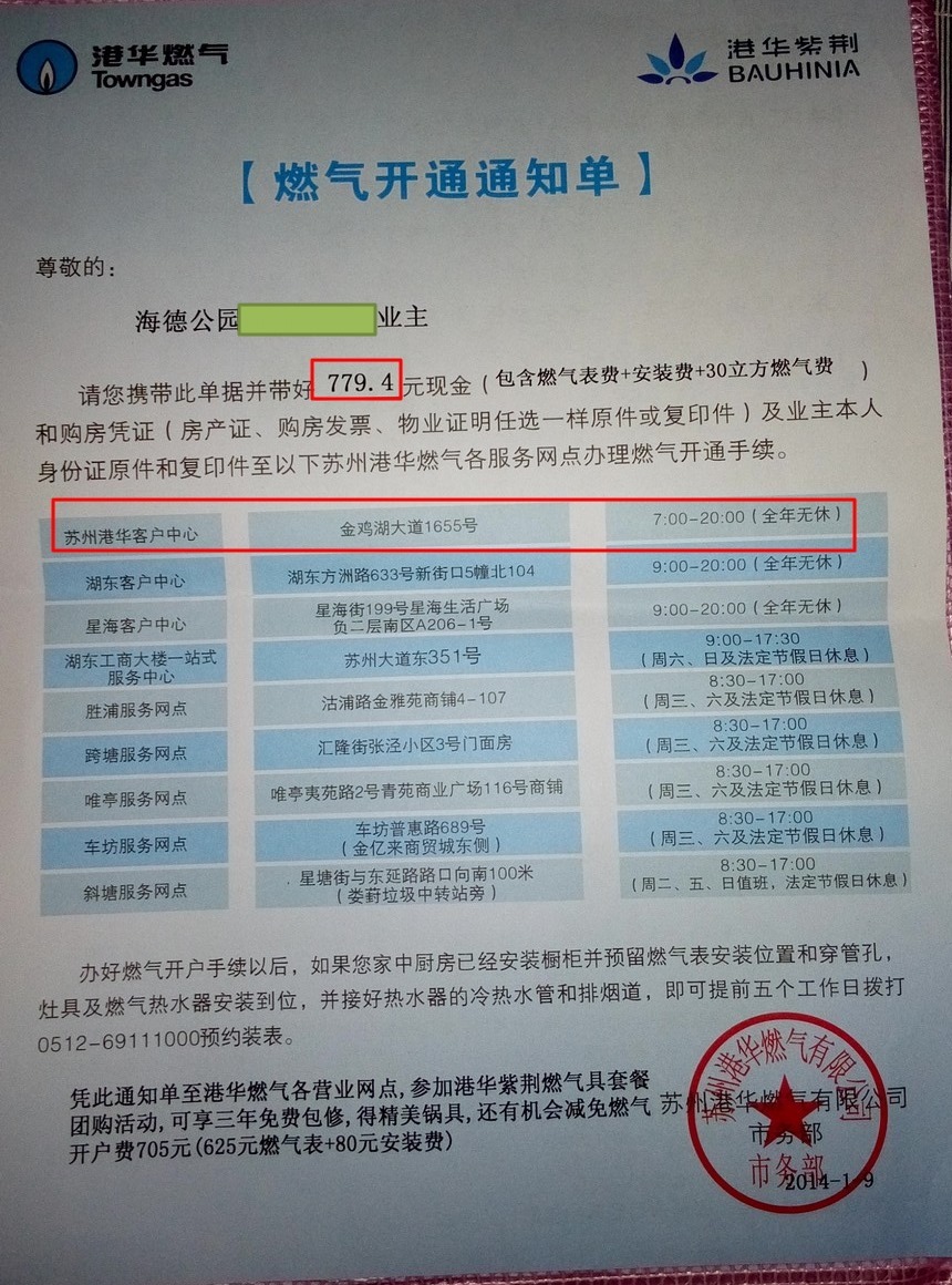 开通燃气时需要带的东西 现金800元左右 根据燃气开通通知单上写的,其实只要779.4元。 默认是包含30立方的燃气。 如果想要多开通点燃气,比如50方,100方,可以多带点钱。 (那张蓝色的港华燃气)燃气开通通知单 ...