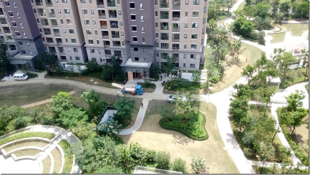 2014-08-15,装修第24天。 之前已经: 【记录】装修第23天:客厅木纹砖铺贴完成大部分 今天已经把客厅地砖铺贴完成了。 不过暂时不能进人,所以只能站在门口拍了几张。 海德内外景 旁边看到吊车...