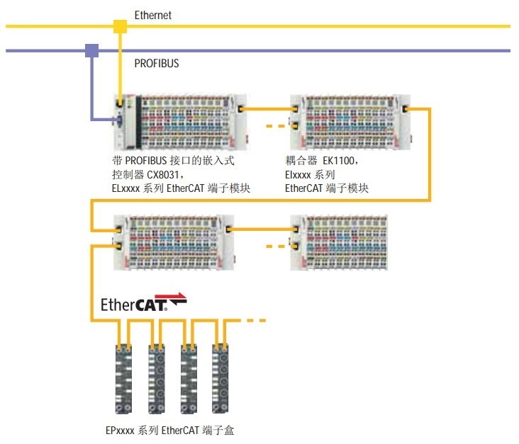Beckhoff的EtherCAT产品 在硬件方面,EtherCAT 端子模块内部集成 了EtherCAT 技术。防护等级为IP 20 的I/O 系统采用的是成熟的Beckhoff 总线端子模块系统外壳。与总线端子模块不同的是, 现场总线的协议数据是...
