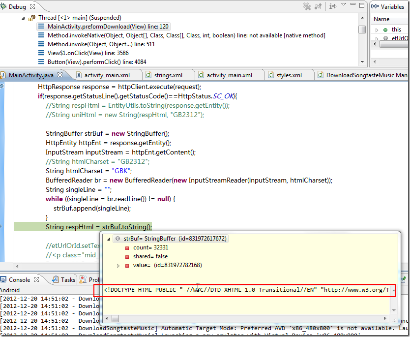 之前可以抓取网页的html了: 【已解决】Android中如何用代码实现去抓取网页 而且后来也确定,是获得了完整的html了: 【已解决】Android中,通过response.getEntity()去获得HttpClient返回的HttpRespo...