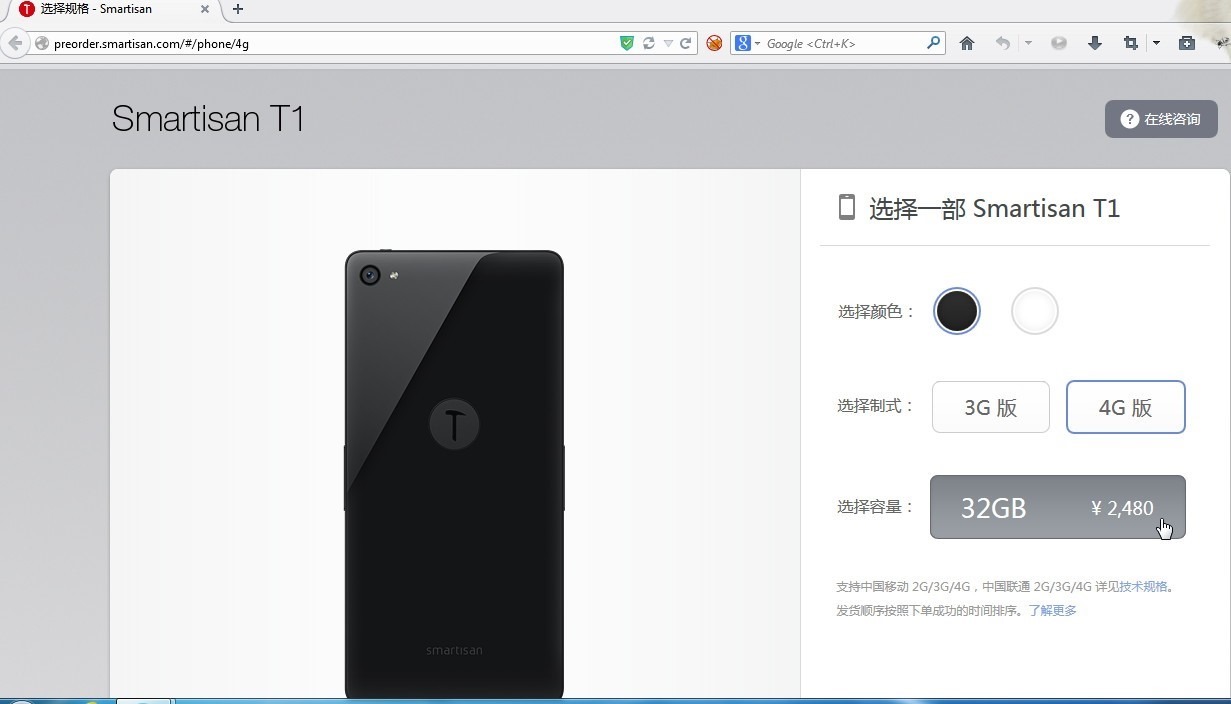 【背景】 帮别人去买个4G的锥子 Smartisan T1手机,32G容量的。 看到锤子官网的商城和天猫都有卖,不过价格都一样,所以还是去锤子手机商城买吧。 【过程】 1.去到官网买: http://preorder.smartisan.co...