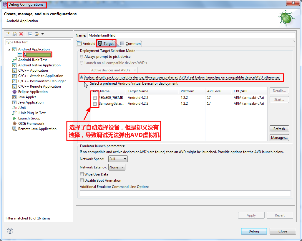【已解决】ADT中调试Android项目但是无法打开对应的AVD即没有弹出对应的Android虚拟机