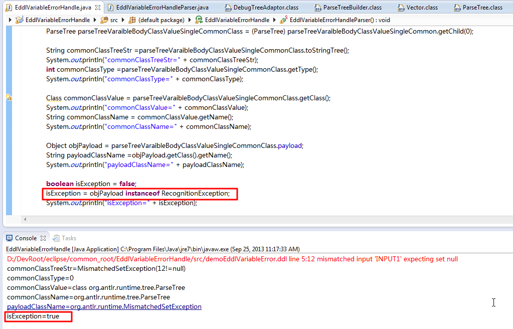 【背景】 之前折腾了一些一些关于antlr的异常处理了: 【记录】尝试折腾antlr v3的异常处理和错误恢复:VARIABLE的CLASS的值INPUT故意写错为INPUT1 【记录】折腾antlr的异常处理:使得当初错时,输出更详细的错误信息,包...