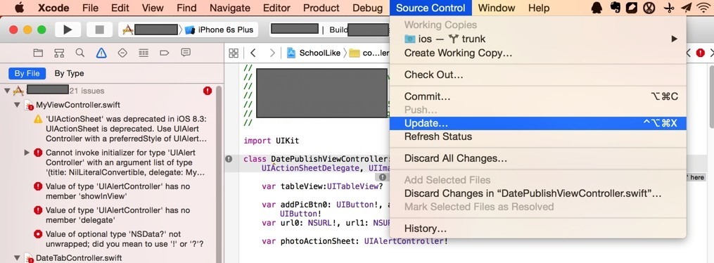 1.Xcode中,等代码修改后,通过: Source Control->Update 就可以更新了: 期间会有一些提示。 不过最后如果更新成功,好像没有任何提示。 2.而另外的,如果点击Commit,就可以上传了: ...