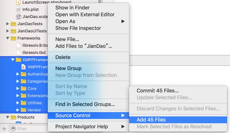 Xcode中: 此处之所以去试试这个add files 是因为: commit的时候,无法批量勾选某个文件夹的文件: 而只有Check All和Uncheck All -》又会使得其他路径下的,不需要的文件都同时被 选中或不选中 -》就没有...
