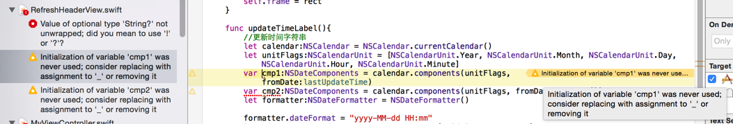 【背景】 一个swift文件中代码: var cmp1:NSDateComponents = calendar.components(unitFlags, fromDate:lastUpdateTime) 提示: RefreshHeaderVie...