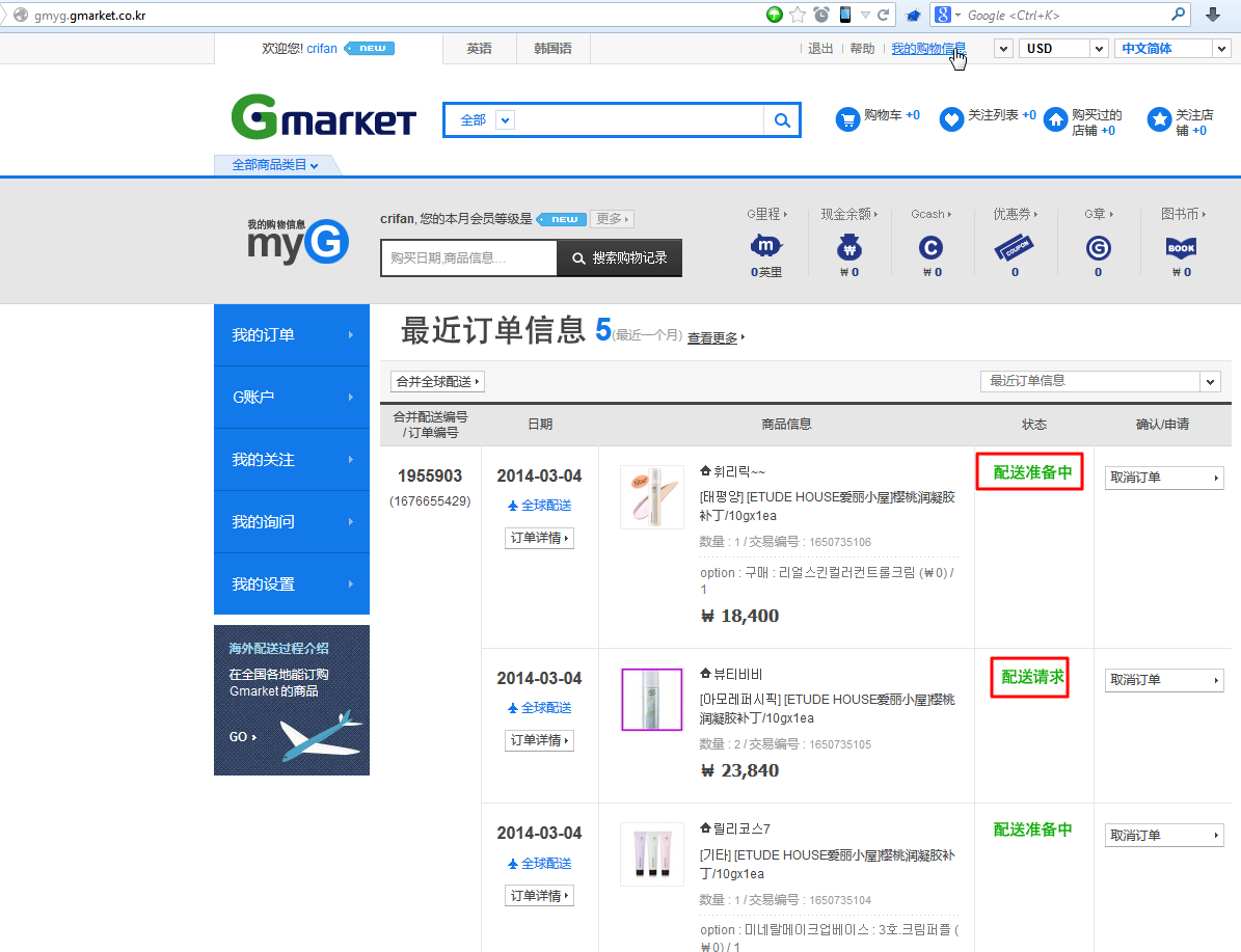 【整理】Gmarket上已购买商品后商品的发货流程和心得