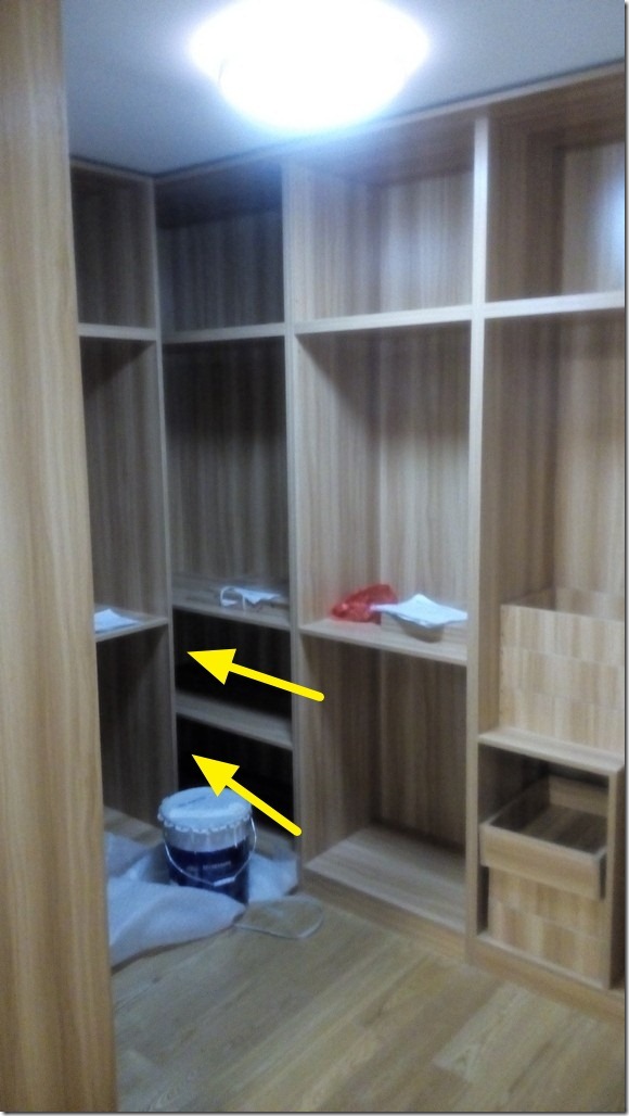 在: 【记录】20141011-20141012装修第81-82天:收货橱柜衣柜板材+安装主卧衣柜 之后,有些心得: 衣柜部分边角处很深,人很难够得到 还是由于没经验: (1)最底下的,衣柜最边角处,有几处,还是位置和边上的衣柜或书柜有...