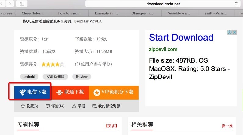【背景】 用Safari去打开csdn下载东西: http://download.csdn.net/download/jenson138/8490067 ...