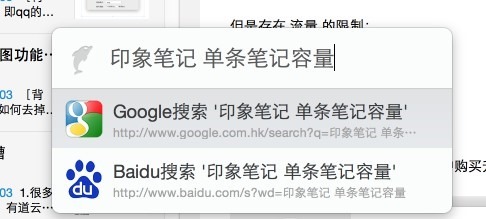 【背景】 之前一直用: command+L选中Safari网页中的页面地址后 command+c复制页面地址 然后command+tab去切换到印象笔记中粘贴 来来回回,时不时会在屏幕中间出现那个搜索框: 很是讨厌,妨...