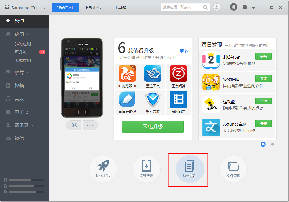 【记录】尝试用QQ的应用宝(原QQ手机管家)去备份安卓手机三星Galaxy S II GT-I9100G的数据