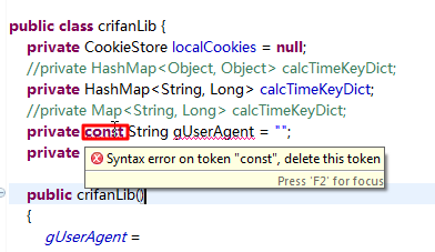 【背景】 折腾: 【教程】模拟登陆百度之Java代码版 期间,需要写几个全局的,const的String。 【折腾过程】 1.结果是参考自己的: 【已解决】Android(Java)中的const变量定义出错:Syntax error on toke...