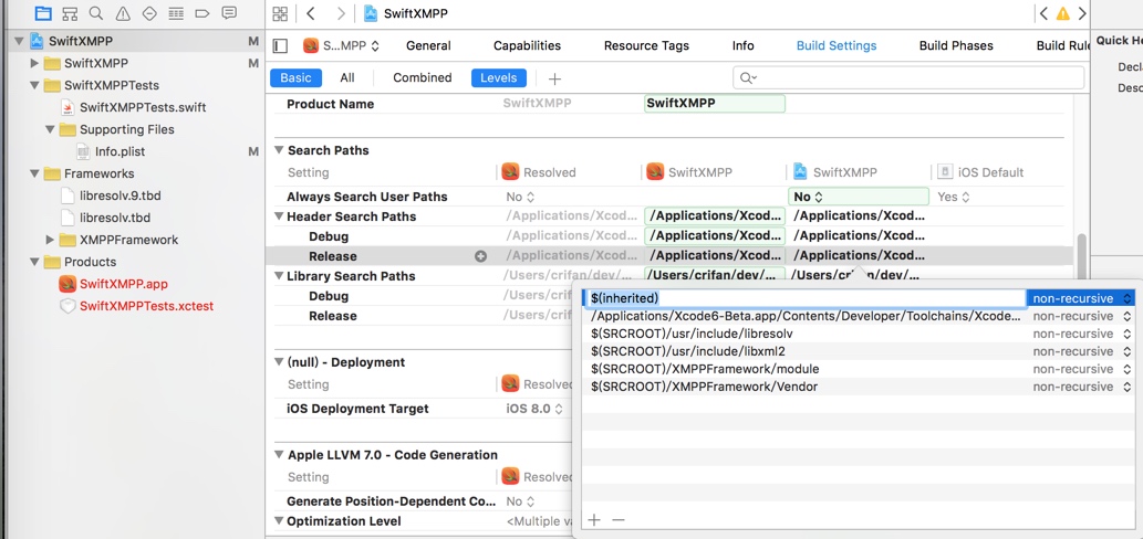 Xcode项目,导入了,之前已经在别处编译通过的,SwiftXMPP的源码,后,编译出错,找不到头文件: XMPPFramework/Vendor/facebook-ios-sdk/vendor/OCHamcrest/Source/Tests/Co...