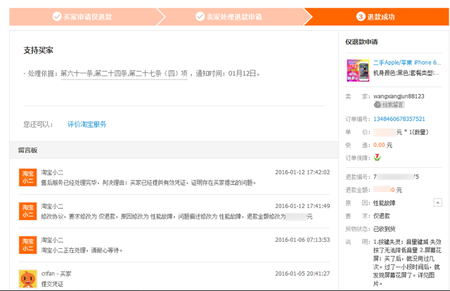 此次遇到问题的商品,去退货,虽然经历了点小曲折,但是终究还是退款成功了。也算是幸运。。。