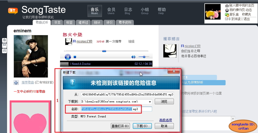 【史上最简单的方法】实现在win7中通过360浏览器直接下载songtaste的歌曲