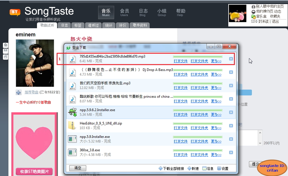 【史上最简单的方法】实现在win7中通过360浏览器直接下载songtaste的歌曲