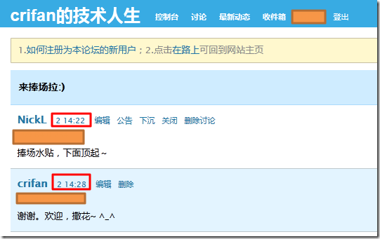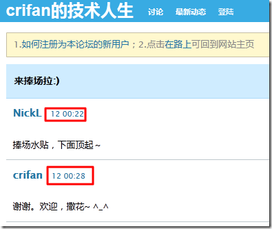 然后再退出登陆,去查看那个帖子的发布时间: