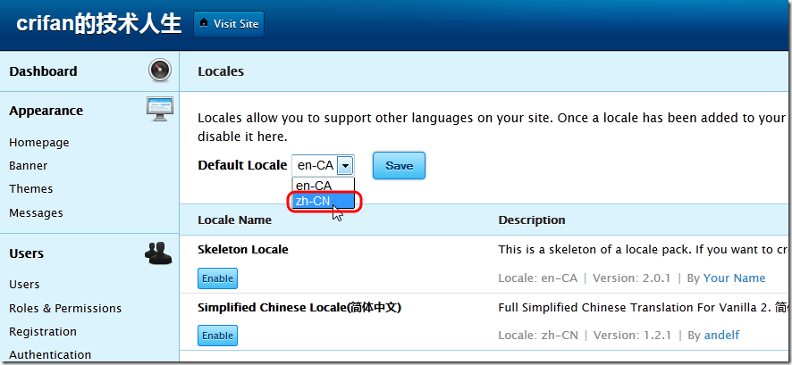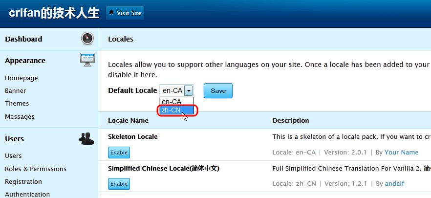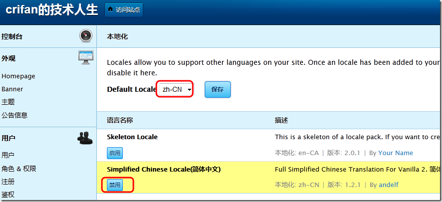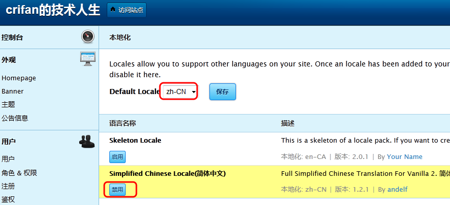 再去vanilla后台设置locale为zh-CN: