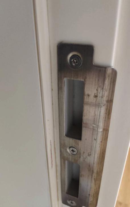 - 1. 调整门框上的锁孔金属片位置,让锁舌位置调整到合适状况