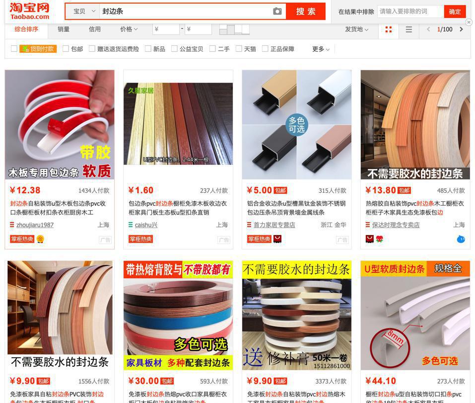 免漆板家具自粘封边条PVC装饰封边条包边条生态板橱柜衣柜 封口条-tmall.com天猫