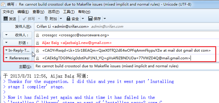 并且,还由于之前就保存过一次In-Reply-To,加上刚才又弄了一次In-Reply-To,所以搞得都有了两个In-Reply-To了。