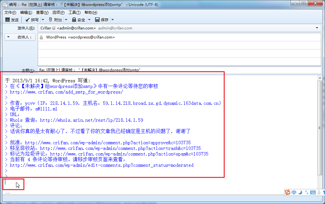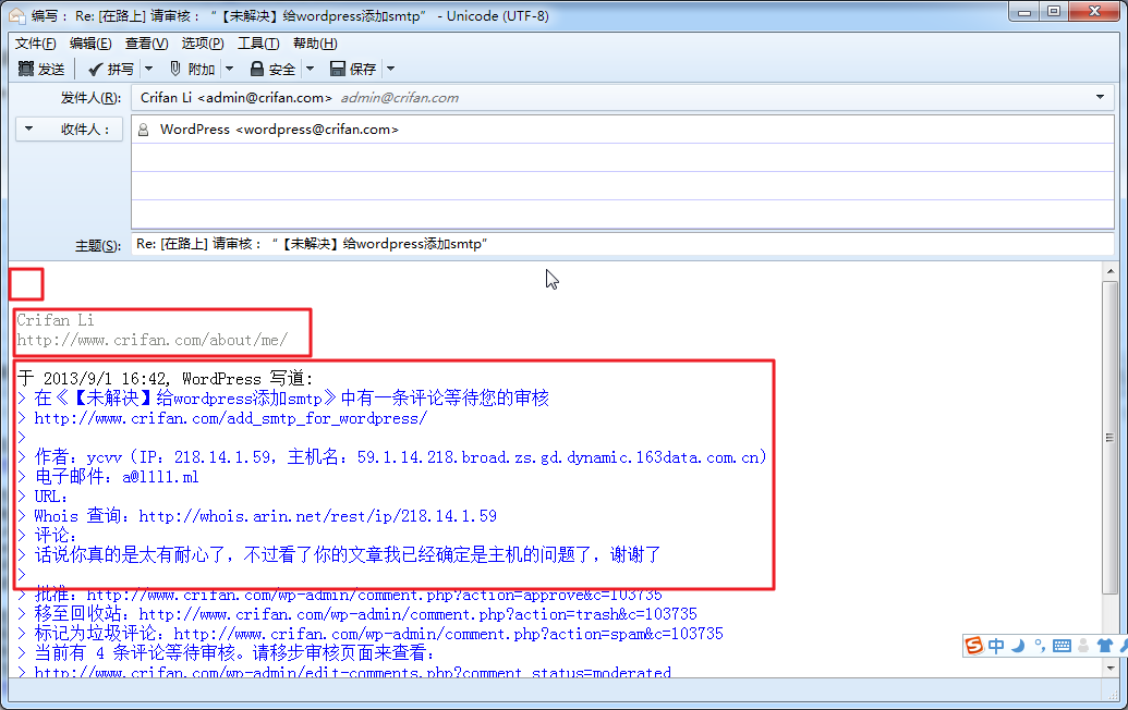 并且,也把我已经有的签名,放在回复内容的后面,被引用的内容之前: