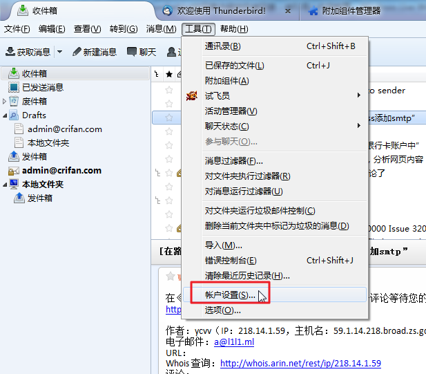 【已记录】设置Thunderbird中回复内容放在被回复(被引用)内容前面
