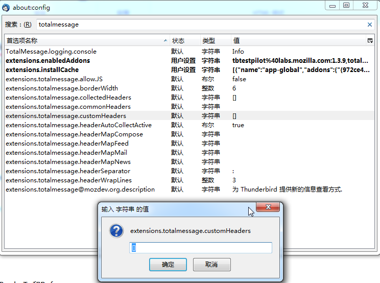 Thunderbird中的totalmessage,相对来说,貌似很不好用,也没法很方便的用其实现,自定义头信息的功能。