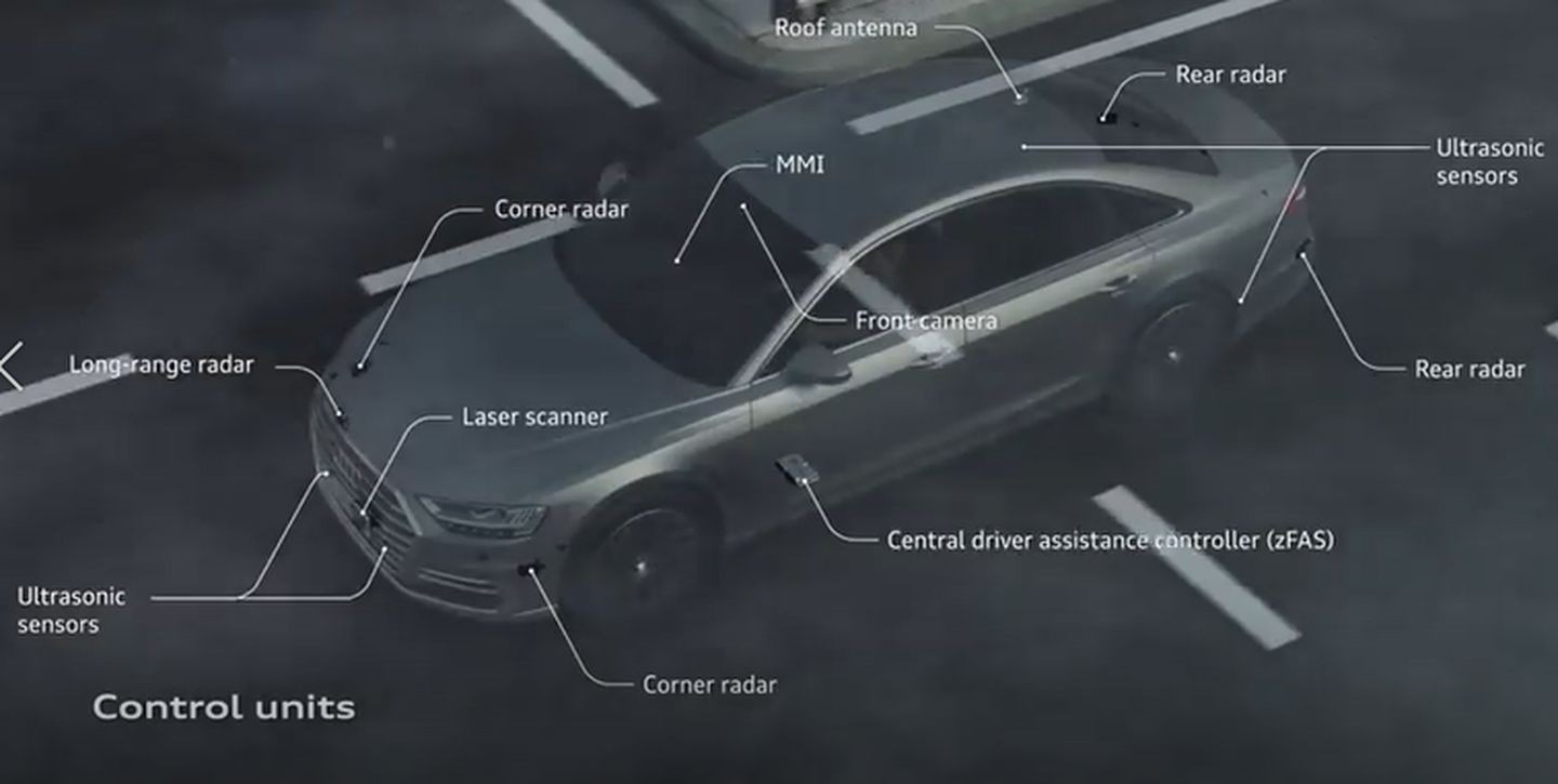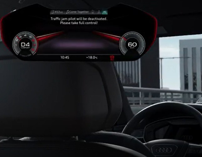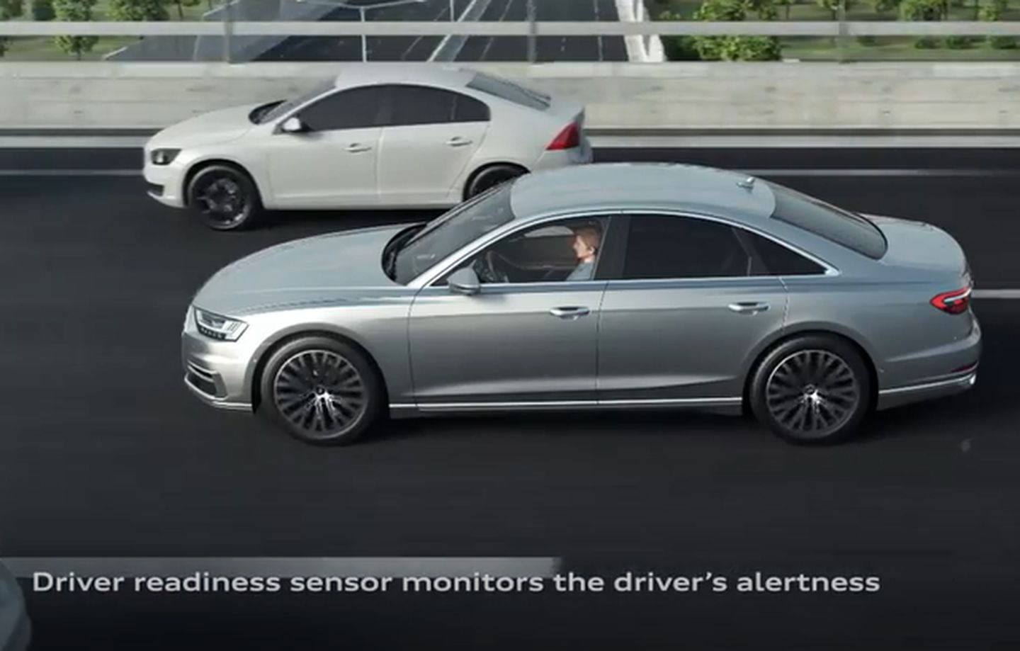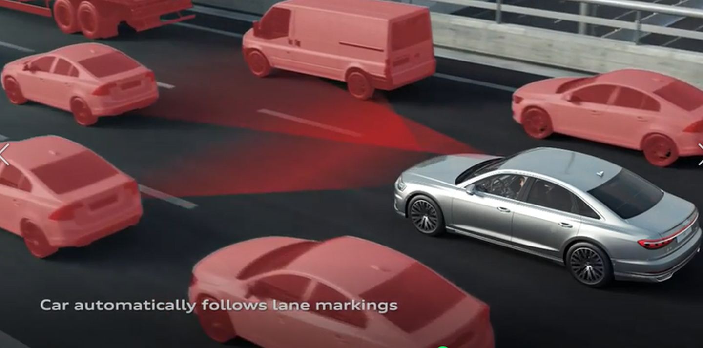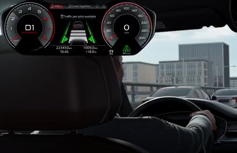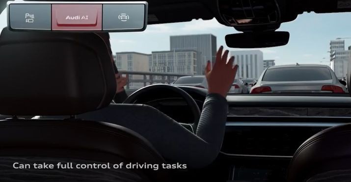 - Audi车子上面会有一个“AUDI AI”的物理键,一键可触发TJA功能,系统接管车辆的控制,但是人必须将双手放于方向盘上,准备随时接管车辆的控制