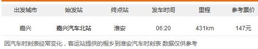 从 嘉兴汽车北站 做长途汽车 到 淮安