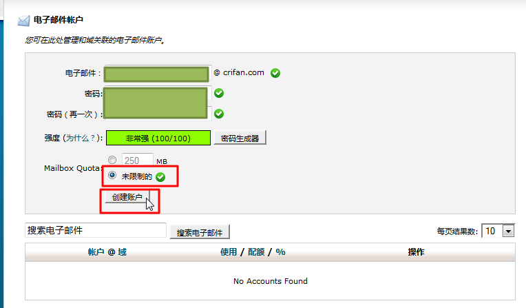 新空间hawk的cpanel中,新建,和之前旧的网站的一样的,对应的邮件账户了。