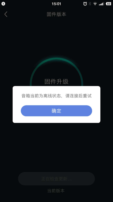 去点击升级固件,升级了2次,耗时半天,最后音响说:升级固件失败