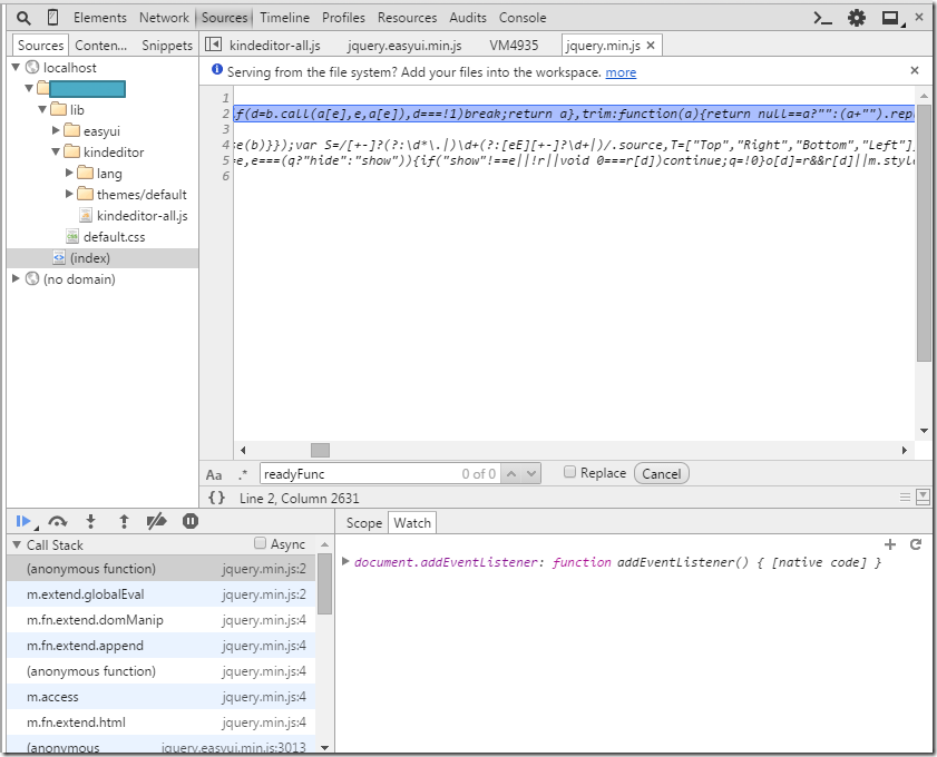 其中,对于js代码,在允许的情况下,把压缩版的xxx-min.js换成完整版xxx.js,这样才能看清代码。否则压缩版的代码,都是没有注释,挤到一起的,没法调试的。
