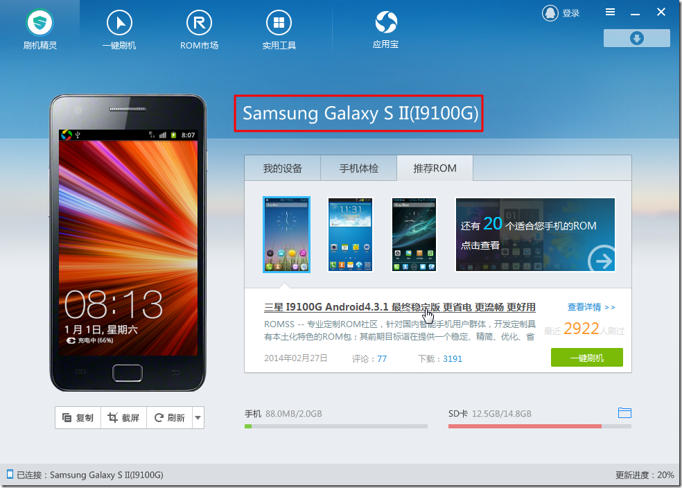 1.去在应用宝->第三方刷机工具->刷机精灵