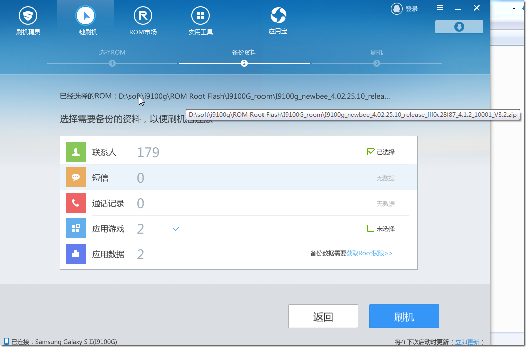 【记录】尝试用应用宝把之前4.1.2的I9100G的安卓中的数据恢复到现在的2.3.6的安卓上