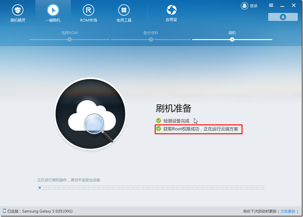 6.期间会通过云检测刷机方案,然后此处需要先去获得root权限: