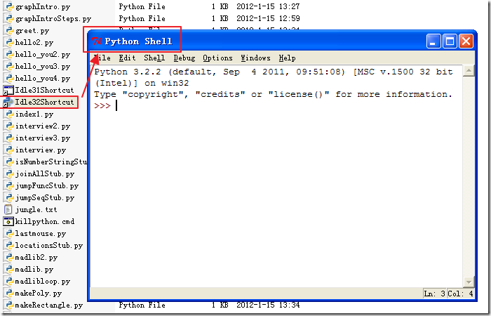 - 此处我的是Python 3.2.2,所以用Idle32Shortcut