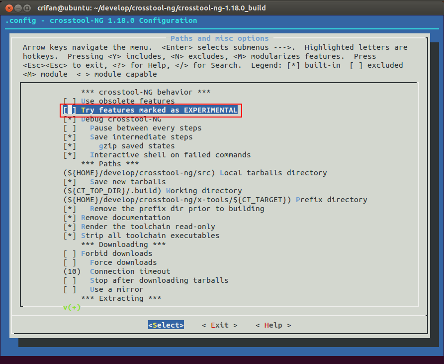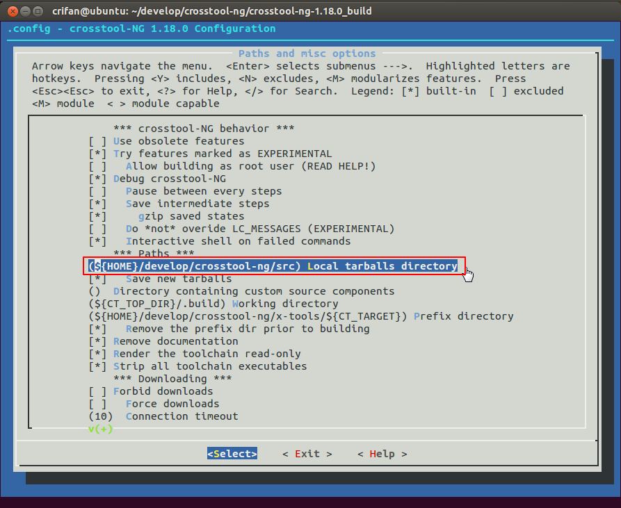 (/home/crifan/develop/crosstool-ng/src) Local tarballs directory |