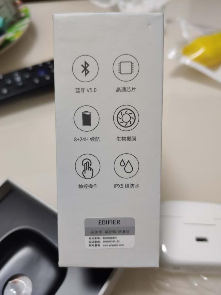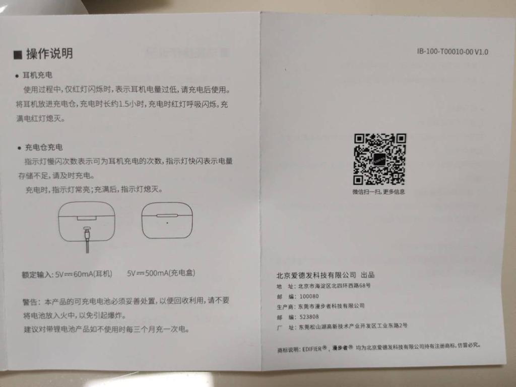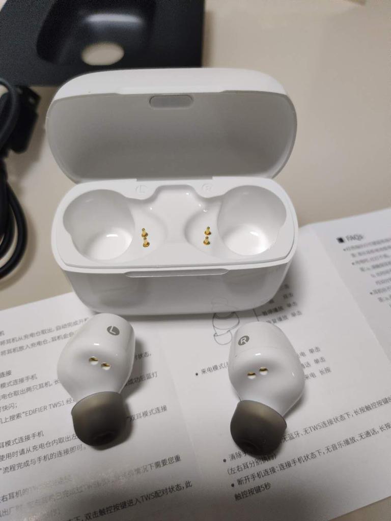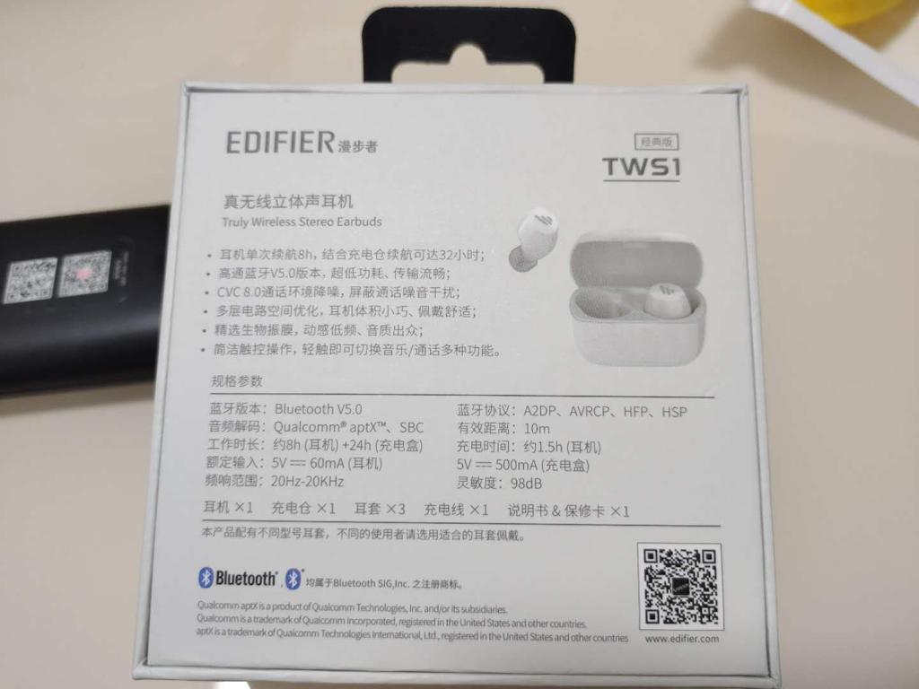 折腾:【记录】漫步者无线蓝牙耳机TWS1开箱照和使用心得期间,TWS1到货了:外包装盒:打开后:侧面特点介绍。打开盒子全家福。背面的关于参数介绍。使用说明书取出盒子的底面。打开盒子可以看到耳机了。俯视图。把耳机从盒子里面拿出来。可以看到两个灯开始闪烁,一蓝色一红色刚取出还没配对的时候,就是红蓝快速闪烁。转载请注明:在路上 » 【记录】漫步者TWS1无线蓝牙耳机开箱照 Post Views: 906